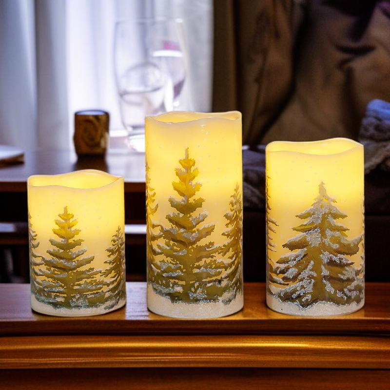 شجرة عيد الميلاد مع أضواء الشموع الإلكترونية LED وزينة ديكورية للأجواء الاحتفالية